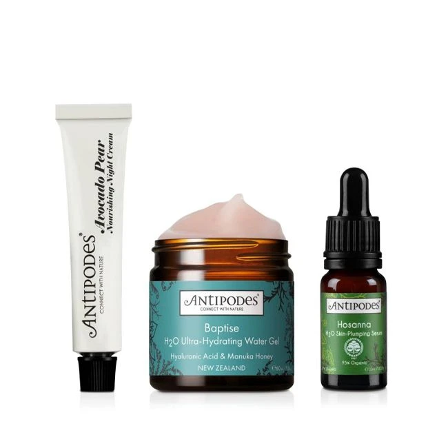 Le coffret soins Peau Fraîche ANTIPODES désaltère la peau en profondeur et restaure souplesse et confort.