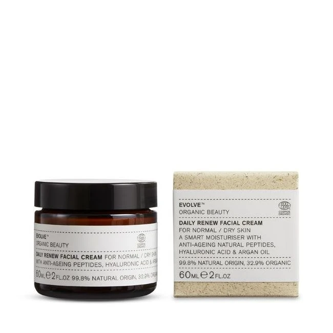 La crème visage bio Daily Renew Evolve nourrit l’épiderme grâce à la présence d’huiles végétales précieuses comme l’argan.