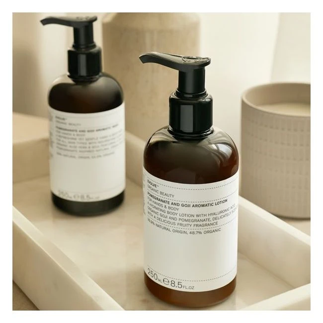 La crème corps grenade et baies de goji EVOLVE enveloppe la peau dans un cocon de douceur.
