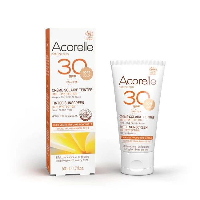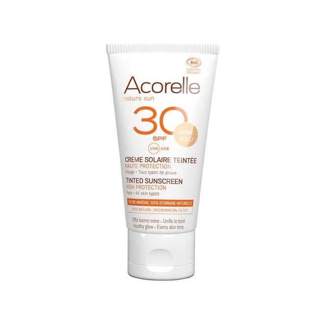 La crème solaire teintée SPF30 ACORELLE est un must have qui protège, unifie et illumine la peau.
