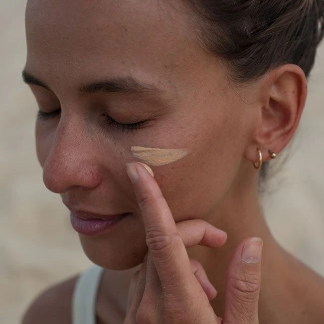La crème solaire teintée laisse sur le visage un parfum naturel, sans substance photosensibilisante.