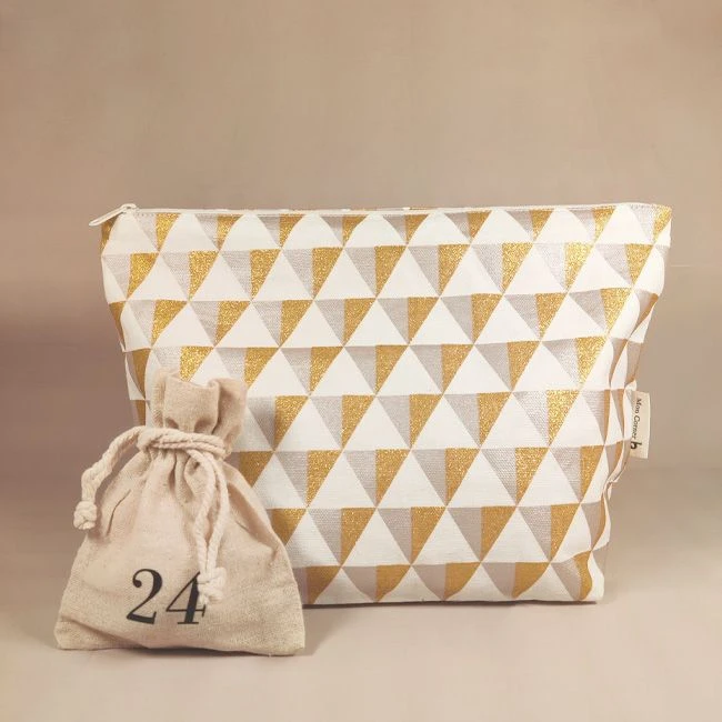 Le calendrier de l’avent personnalisable MonCornerB regroupe l’adorable trousse pailletée crée en collaboration avec Les Mouettes Vertes, une petite entreprise Française spécialisée dans le textile écologique et ses 24 pochons numérotés.