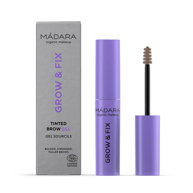 Le gel pour sourcils teinté Grow & Fix MADARA coiffe et discipline les sourcils sans les figer pour une sensation agréable de légèreté.